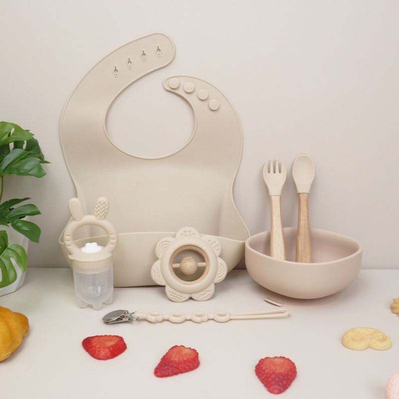 New BPA Free Baby Feeding Suction Bowl Spoon Fork Baby Bib Silicon Feeding Set Baby