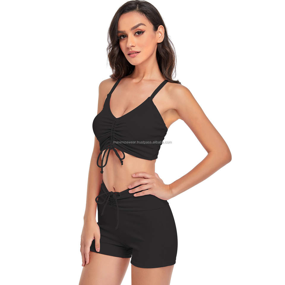 New Beach Bathing Suits Swimwear Women Pink Black Yellow Mid-Waist Bikini Set Swimsuit Women Sexy Lace up Two Pieces Swimwear