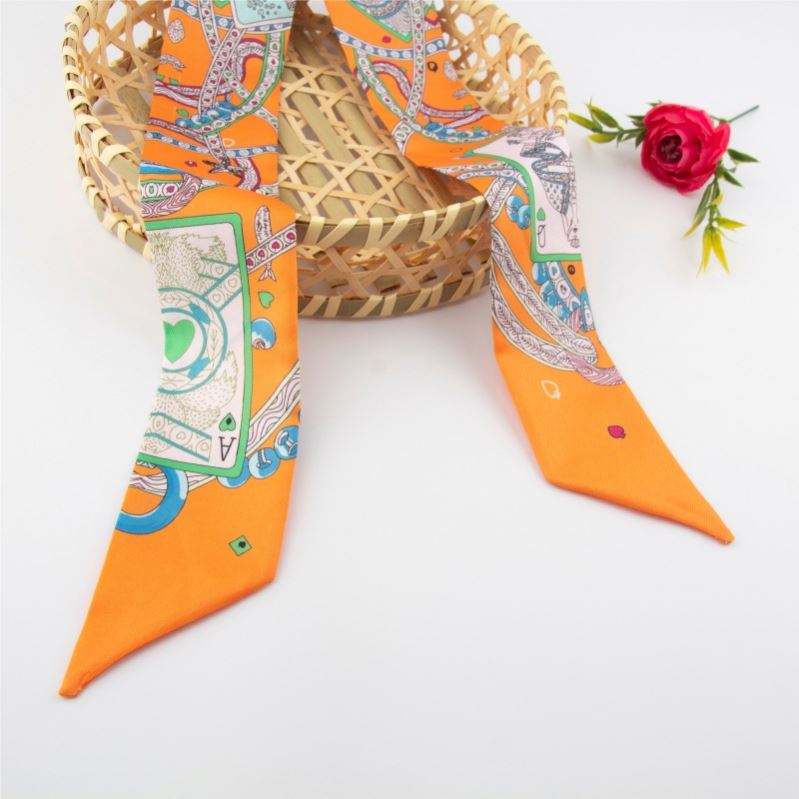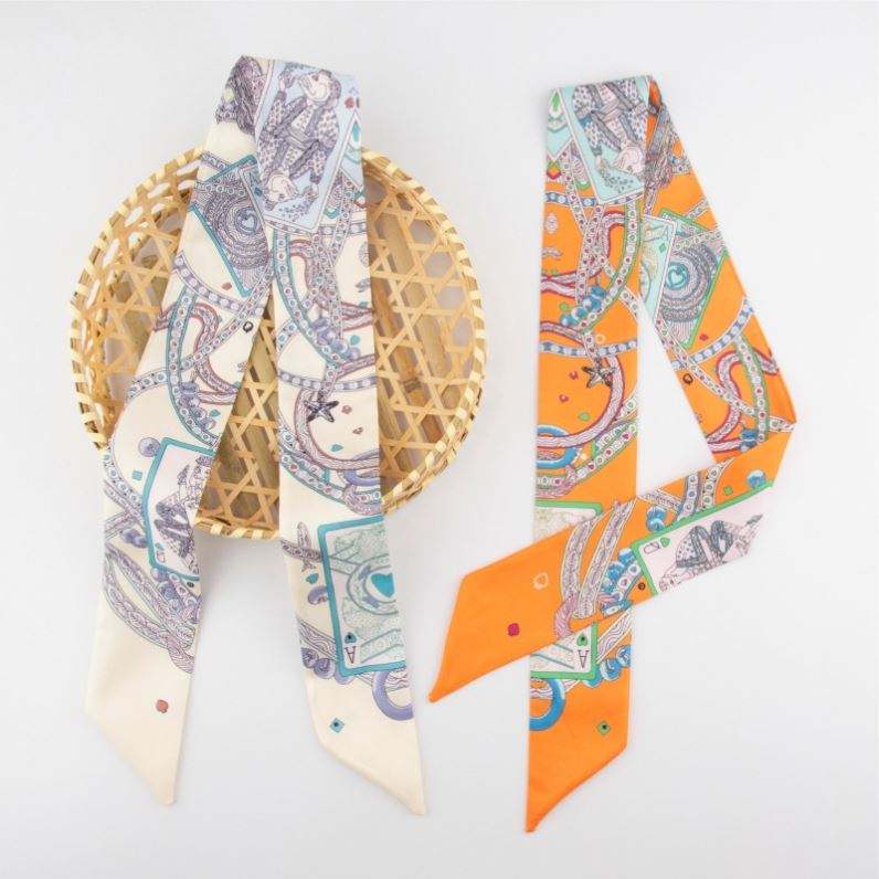 New Beige Poker Pattern Small Long Silk Scarf Women's Satin Versatile Thin Rectangular Korean Style
