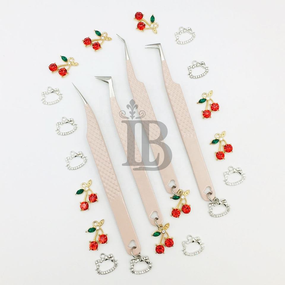 New Beige Tweezers Hello Kitty False Eyelash Tweezers Top Rank Sustainable Cherry Charm Tweezer For Eyelash Extension Logo mink