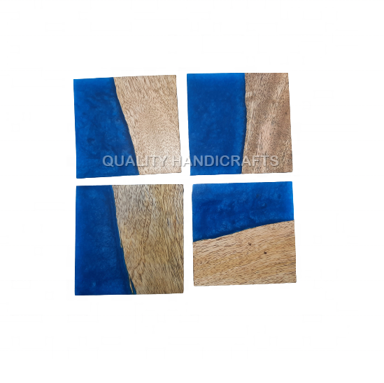 Description:4 Pcs Set Mango Wood & Resin Coaster