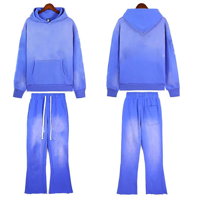 New Best Men Tracksuit Sets Rhinestone customization Logo Aside Wash Hooded Pullover Hoodie Tracksuit for Unisex