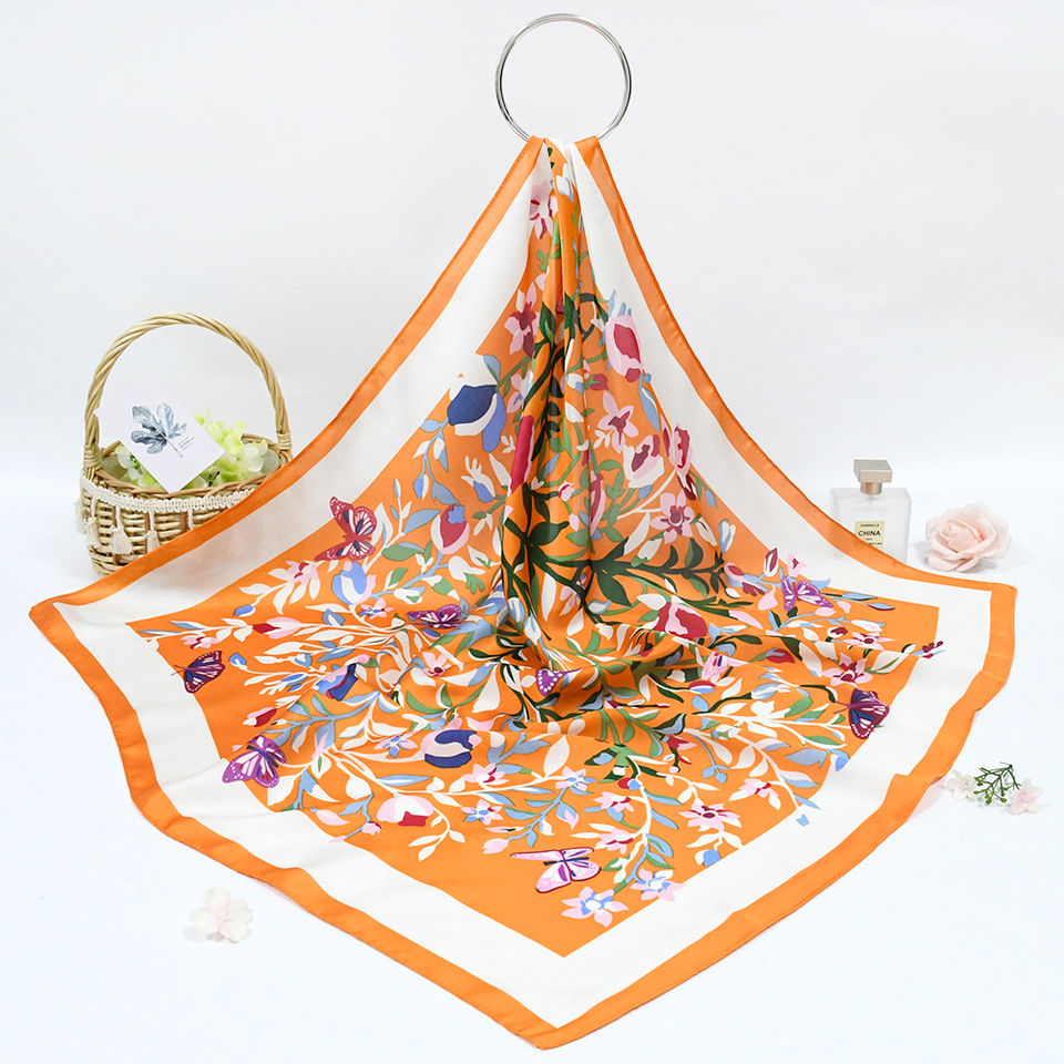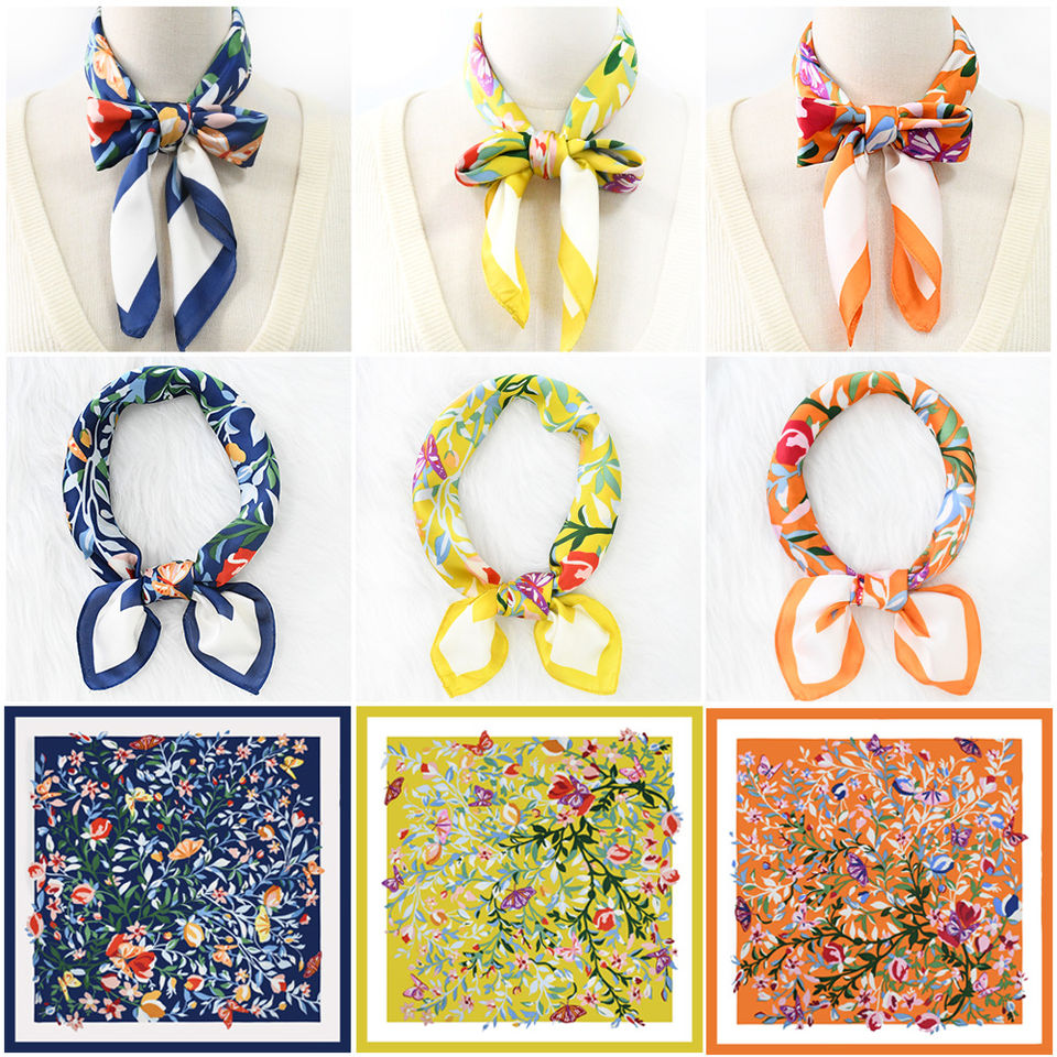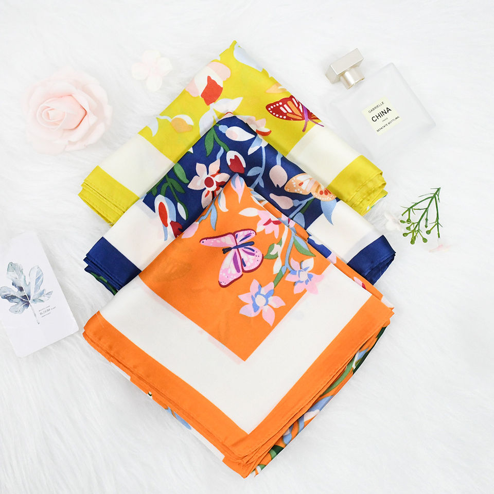 New Best Price Custom Logo Printed 70*70CM Inspired Flower Printed New Fashion Hair Bandanas Small Silk Square Neck Scarf