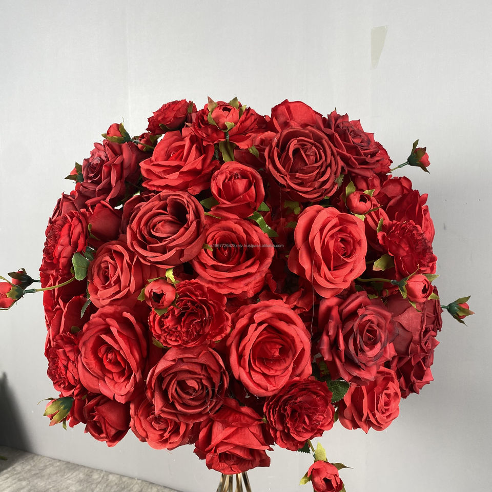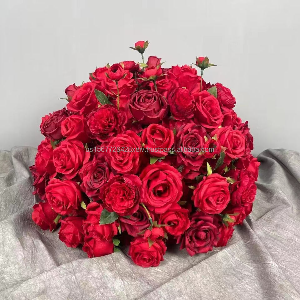 New Best Selling Artificial Flowers Product Silk Artificial Flowers Ball Centerpiece Red Flower Ball for Wedding Home Decor