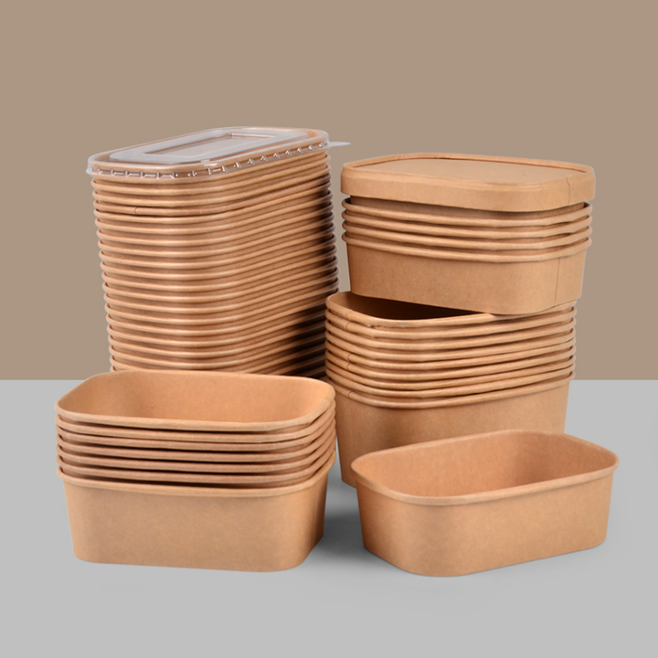 New Biodegradable Disposable Kraft Paper Bowls with Rectangular Square Design Take-Away Food Lid for Square Rectangular Foods