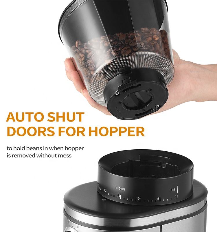 New Black Stainless Steel Adjustable Burr Mill 30 Precise Grind Settings 2-12 Cup Electric Compact Household Espresso Coffee