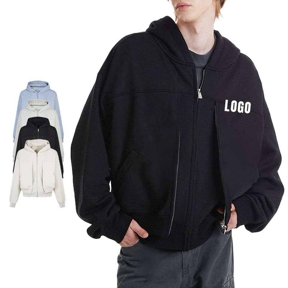 New Black Full Zip up Hoodies Unisex Luxury Quality 100Cotton Fleece Heavyweight Thermal Comfortable Stylish Men's Zip Hoodies