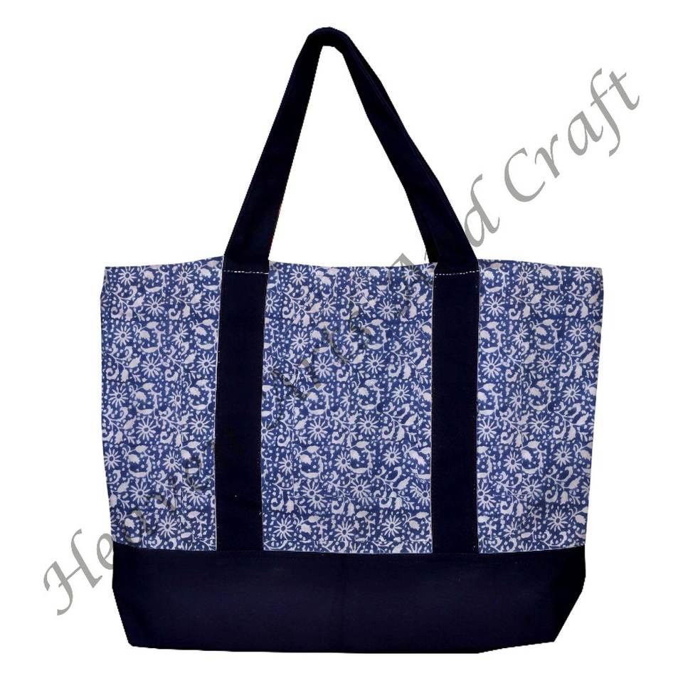 Block Print Black Handle Tote Bag