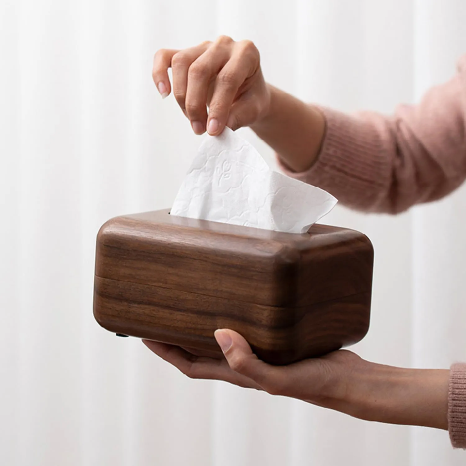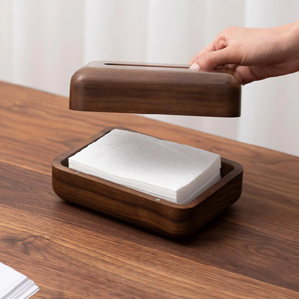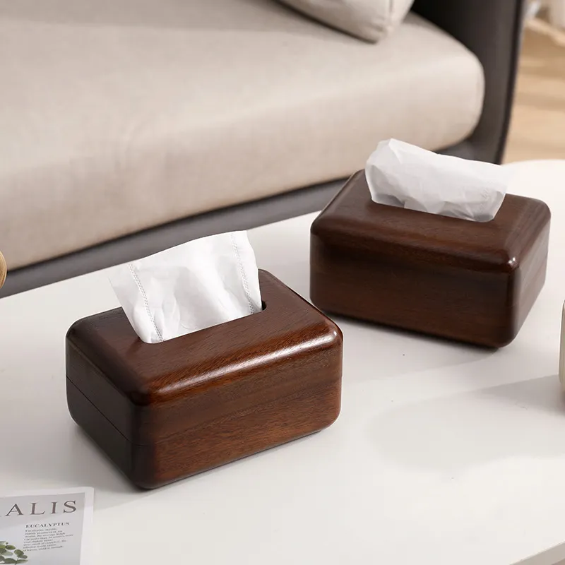 New Black Walnut Tissue Box Wood Grain Surface Tissue Holder for Car Office Living Room Decor Walnut Napkin Holder