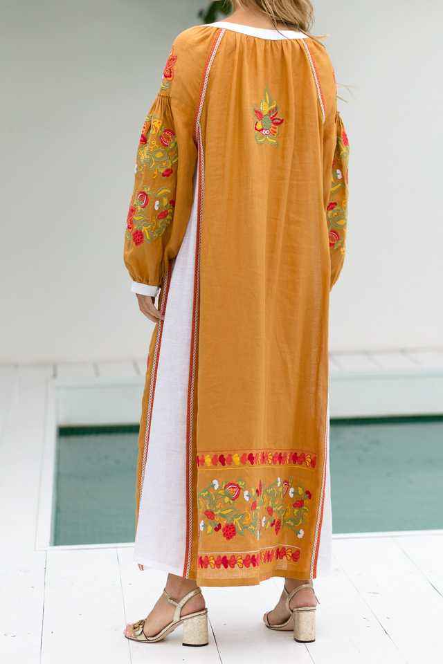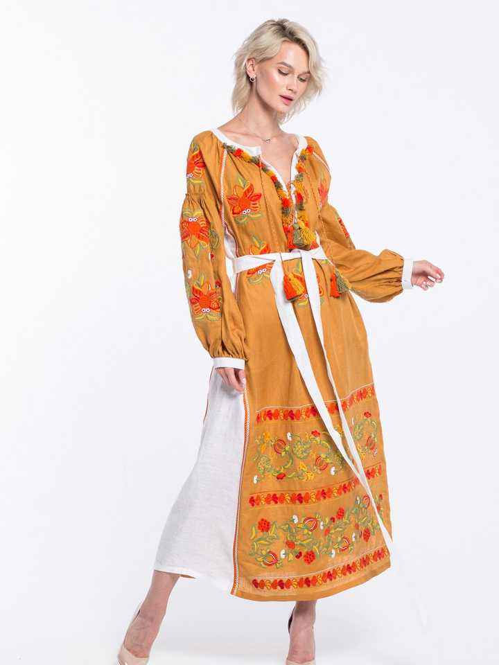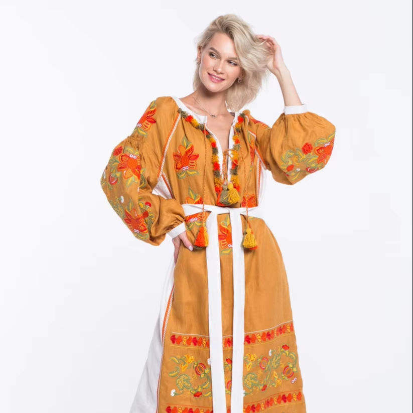 New Boho Chic Plus Size Vyshyvanka Kaftan Gown Eco-Friendly Washable Linen Dress Ukrainian Embroidery Fashionable Bohemian Style