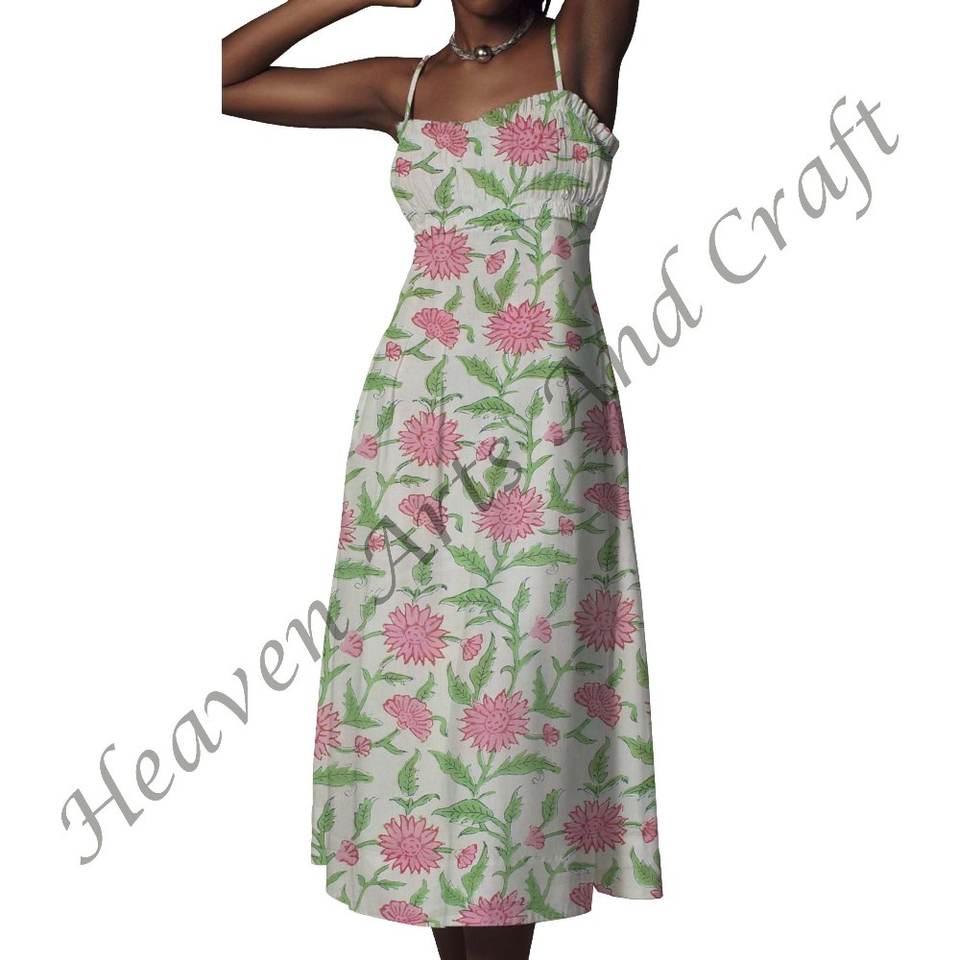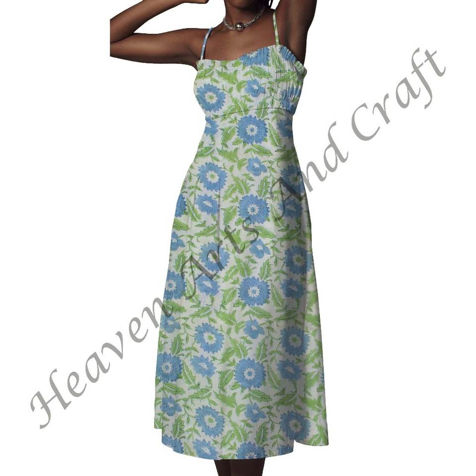 Model Number:Hand Block Printed Spaghetti Strap Dress
