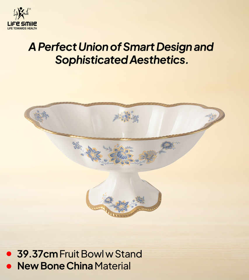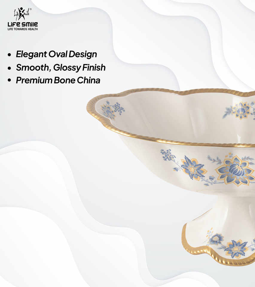 New Bone China Fruit Bowl with Stand White Color with Golden Border Modern Luxury Look Non Toxic Serving Dish