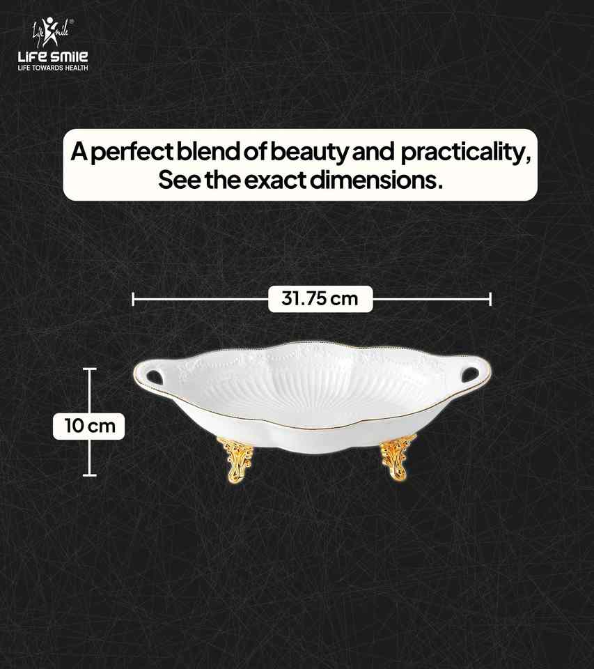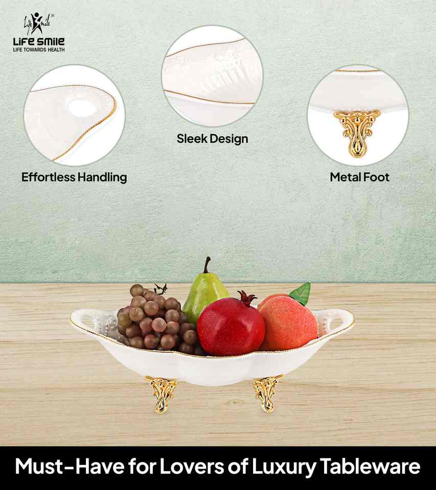 New Bone China Serving Dish Fruit Bowl White Color with Golden Stand Floral Design for Party and Gift