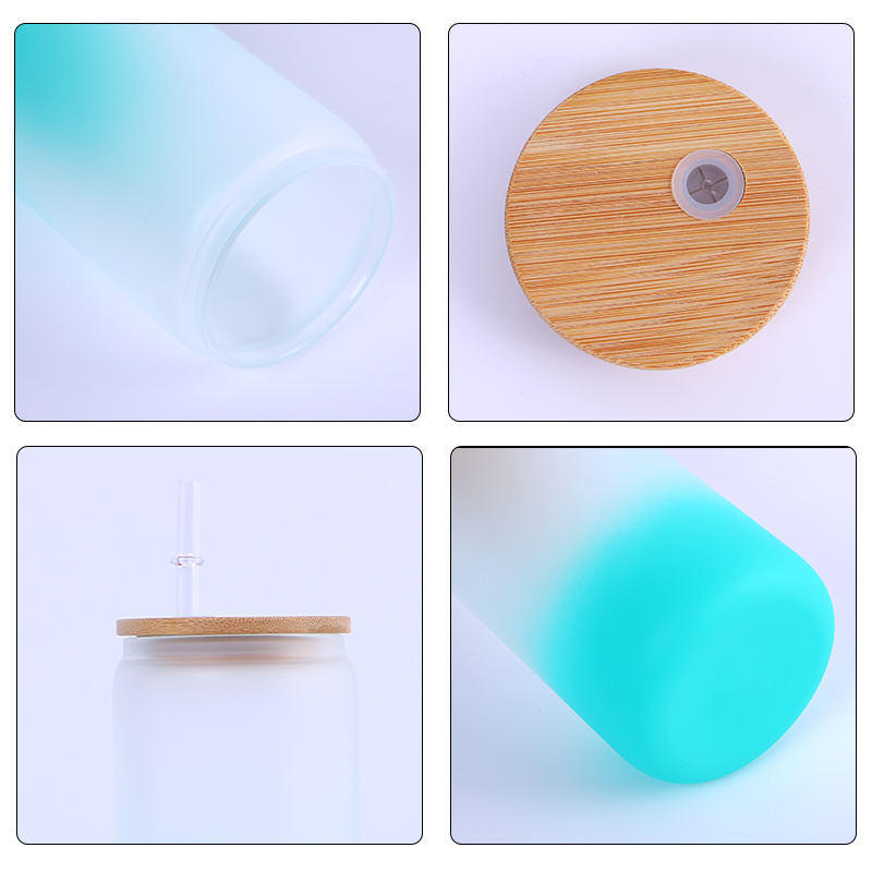 New Borosilicate Glass Cup Coffee 16oz Glass Bottles for Juice Gradient Beer Can Glass Cups with Lids and Straws Sublimation