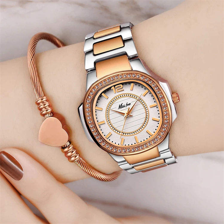 New Brand MISSFOX 2549 Women's Fashion Round Dial Quartz Watch Stainless Steel Band Fashion Gift 2026