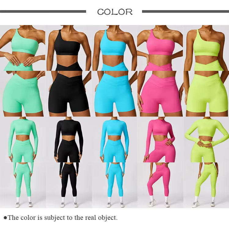 New Breathable Polar Fleece Women's Activewear Gym Fitness Sets One Shoulder Bra Long Sleeve 4PCS Yoga Cross V Belt Pants Shorts