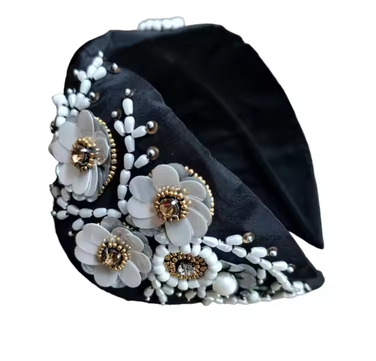 New Bridal Luxury Colorful Rhinestone Baroque Special Design Velvet Fabric Flower Knotted Headband for Women From India