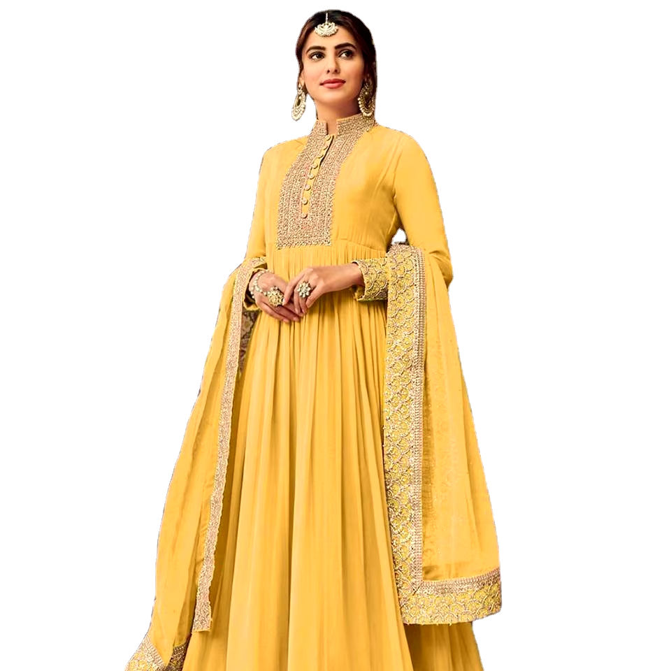 New Bride Maid Valentine's Day Special Long Length High Quality 2024 Hit Design Fashion Georgette Fabric Gown