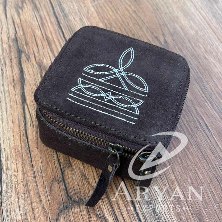 Suede Leather Boot Stitch Embroidered Jewelry Storage Box