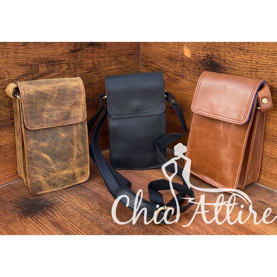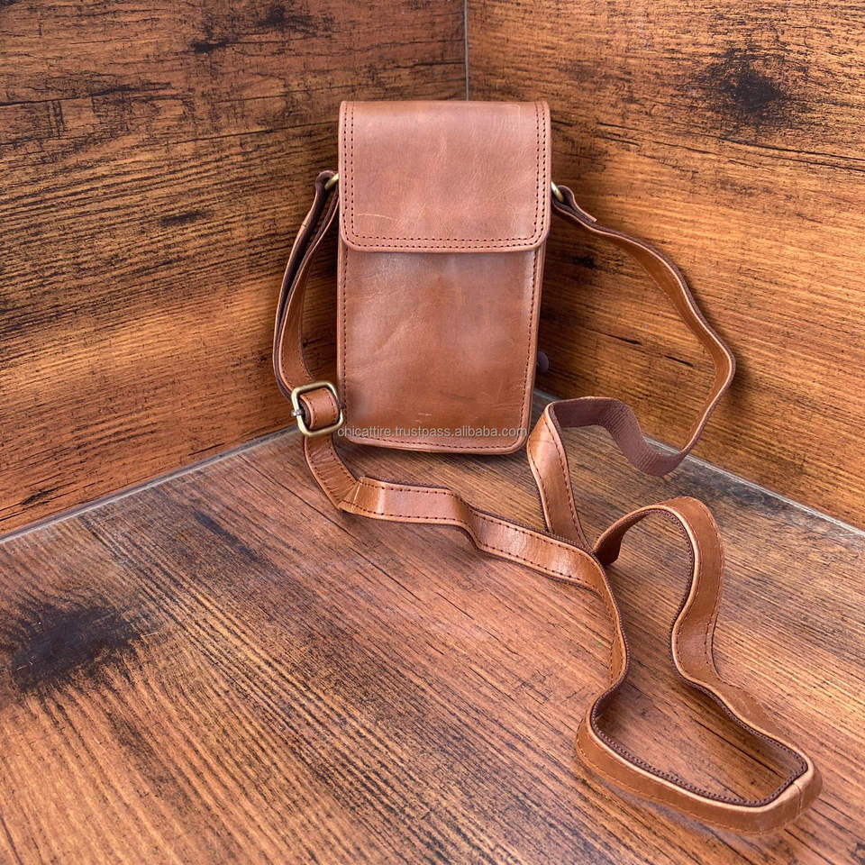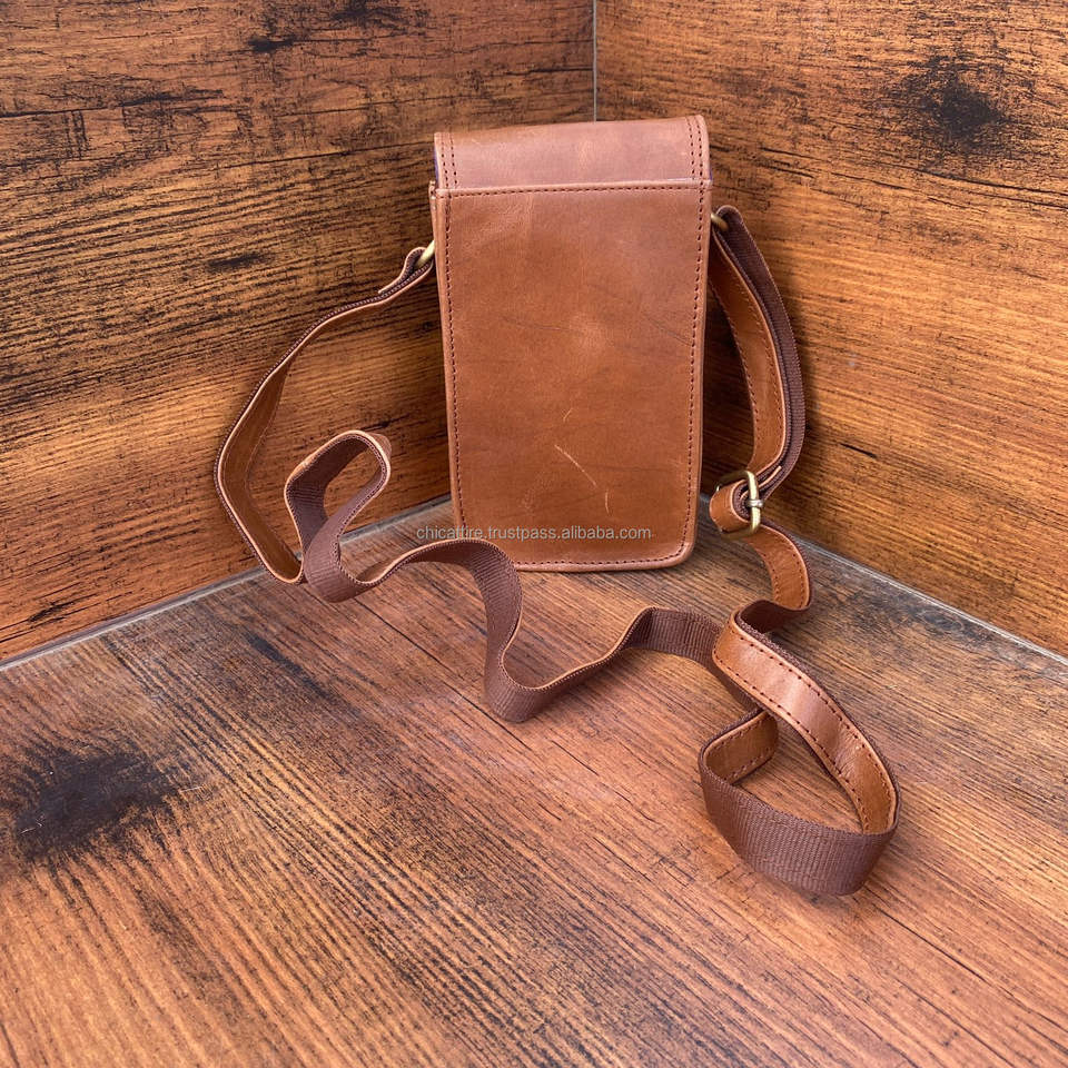 New Brown Genuine Leather Phone Bag for Men & Women's Vintage Style Cowhide Leather Crossbody Phone Purse Small Shoulder Bags