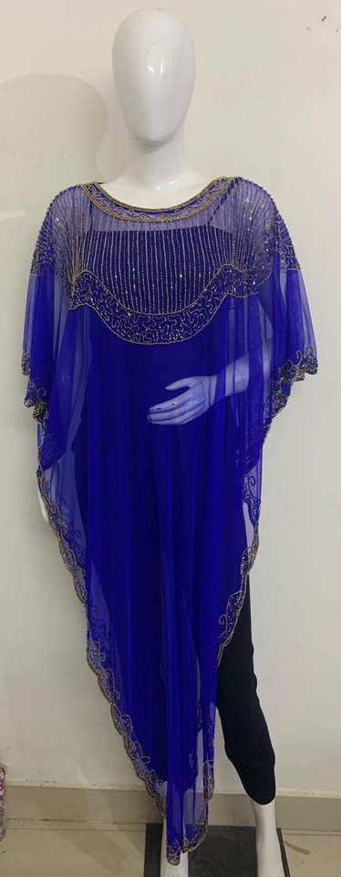 Women's Sexy Kaftan Poncho Dress New Butterfly Sleeves Embroidered Tunic Maxi Swim Vacation Resort Wear Hand Beaded Straight