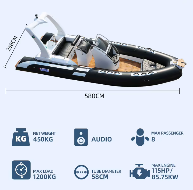 New CE19ft 5.8m Rib Boat 580 Hypalon PVC Inflatable Rib Boat with Outboard Motor for Sale