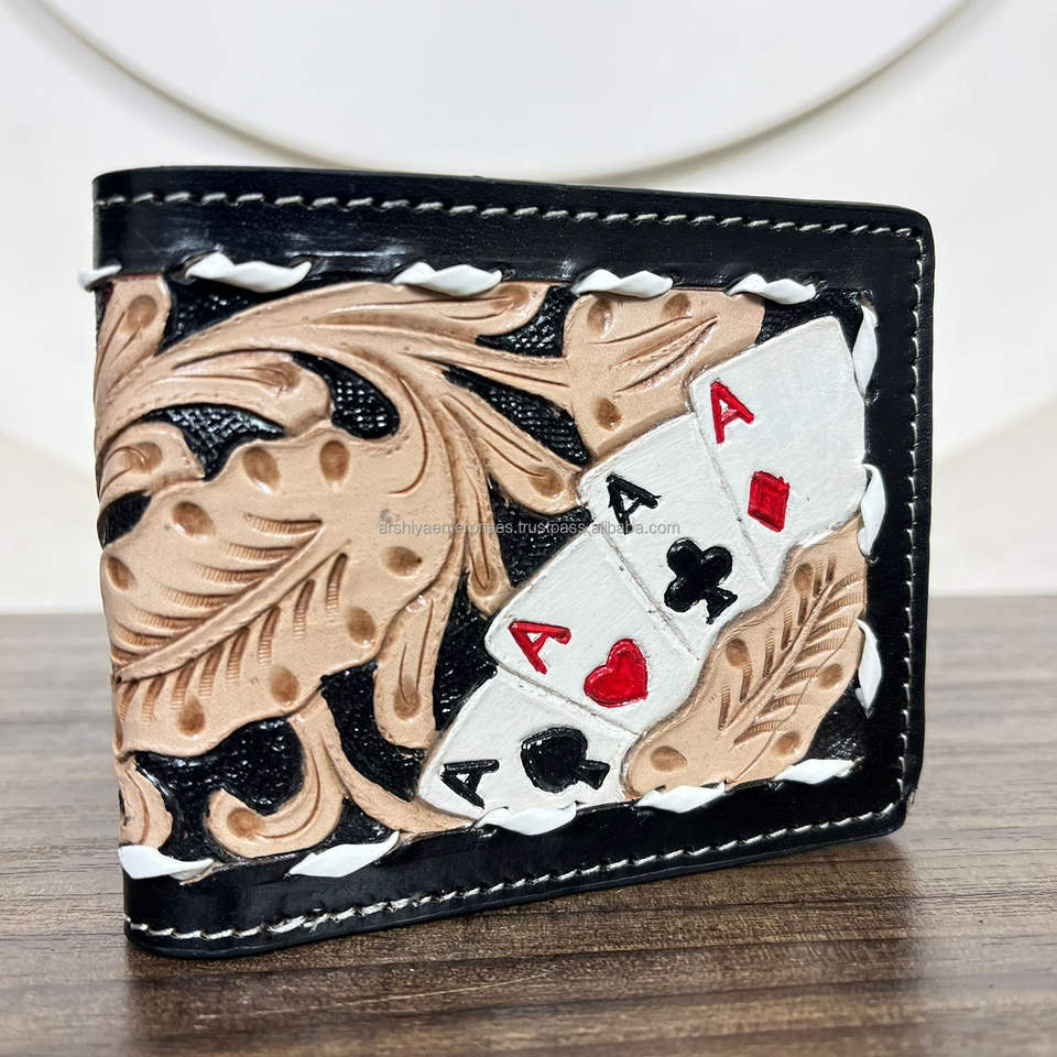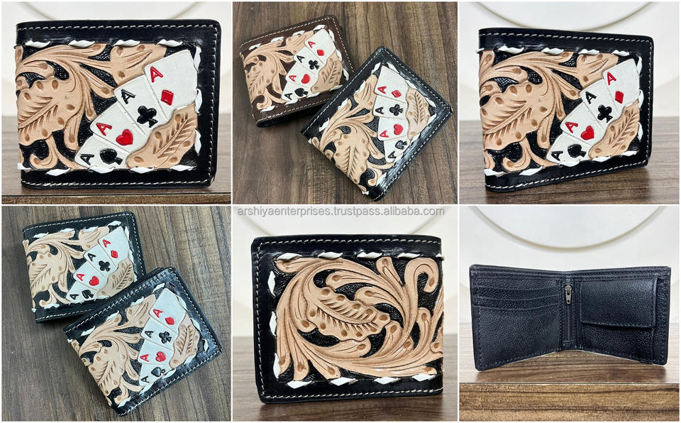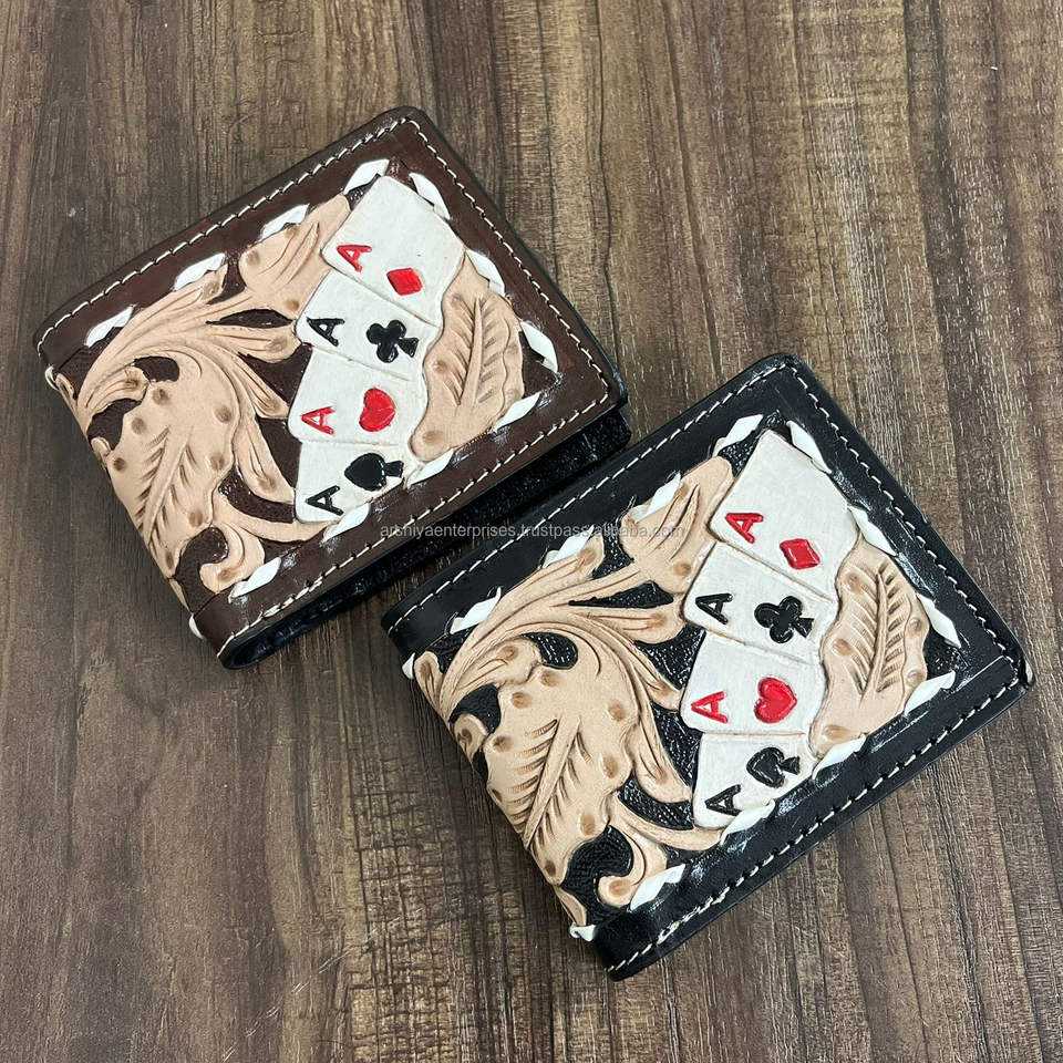 New Card Design Manufacturers Wholesale Hand Tooled Leather Wallet for Men's Genuine Cowhide Leather Bifold Card Holder Wallets