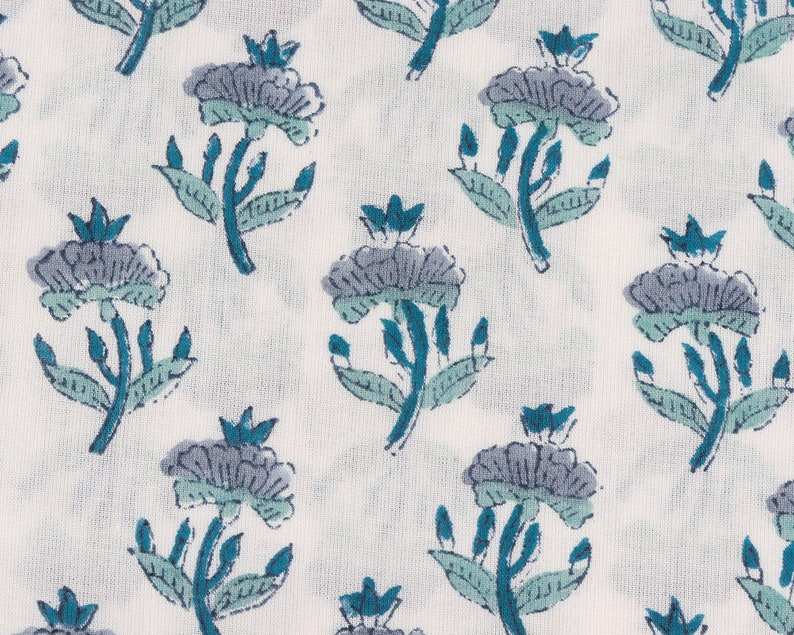 New Carolina Teal Stone Blue Indian Hand Block Printed 100% Pure Cotton Cloth Fabric Yard for Women's Outdoor Mattress Suits