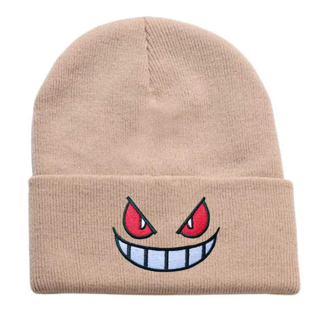 New Cartoon Animation Big Mouth Red Eyes Embroidery Autumn and Winter Knitted Hat Pullover Keep Warm Beanie Hat Custom Logo