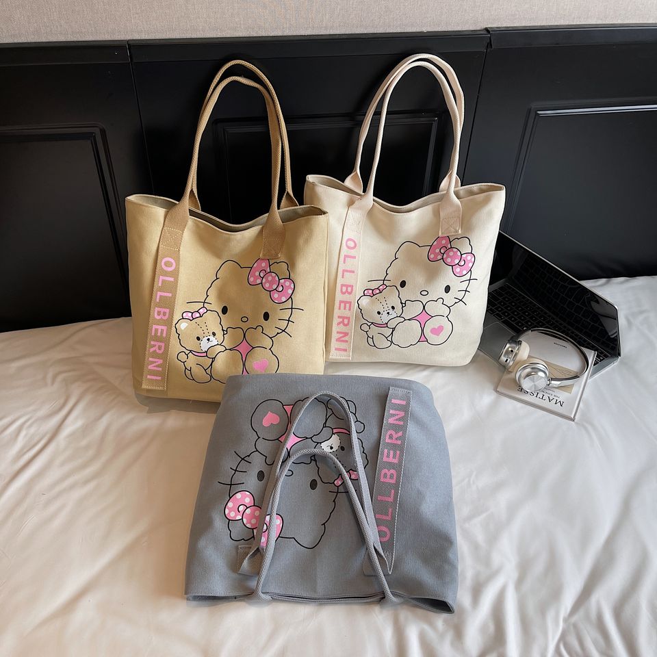 brand name:New Cartoon Cat Print Canvas Tote Bag