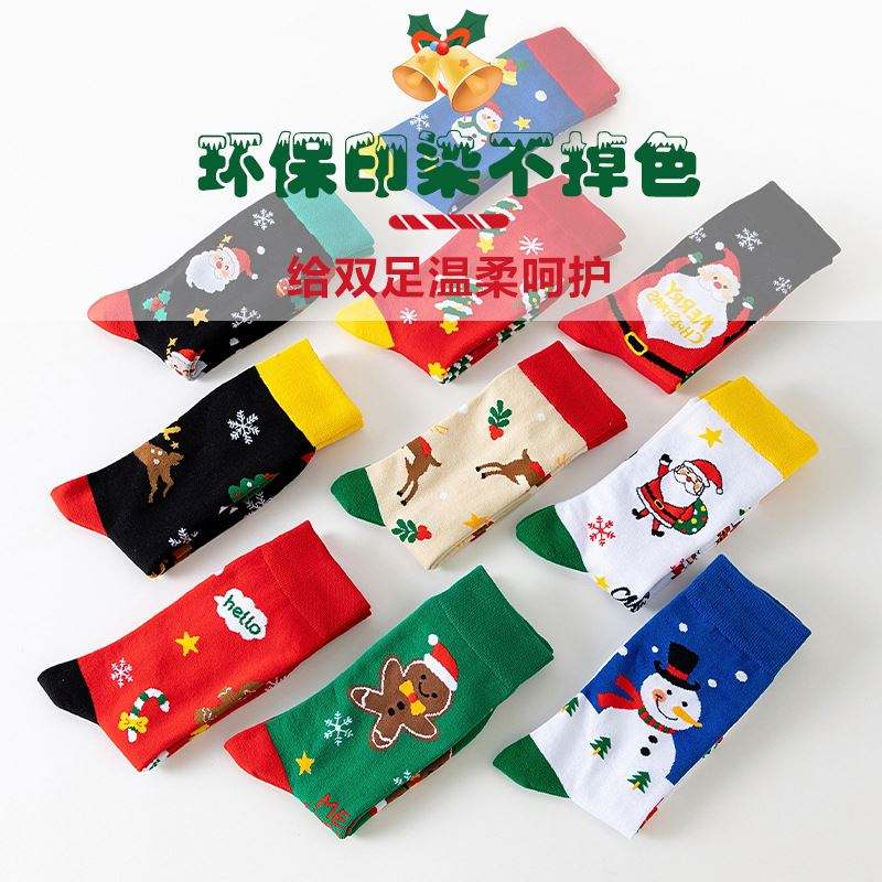 New Cartoon Elk Sweat-Absorbing Cotton Trendy Mid-Calf Christmas Gift Socks