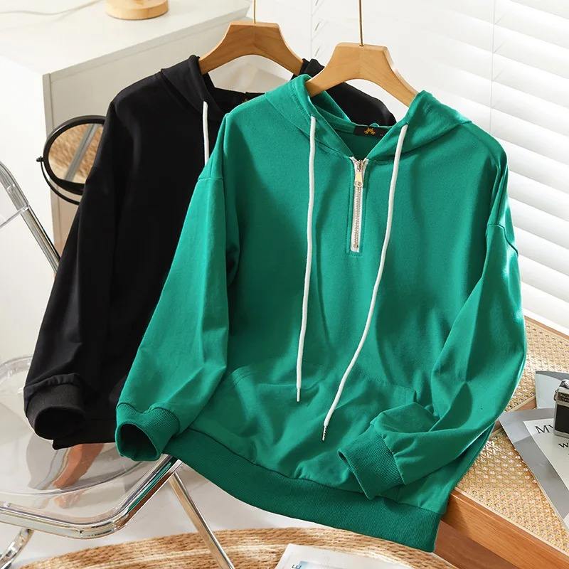 New Casual Drop-shoulder Zipper Hoodies 100% Organic Cotton Breathable Pullover Customize Oversized Hoodies for Woman