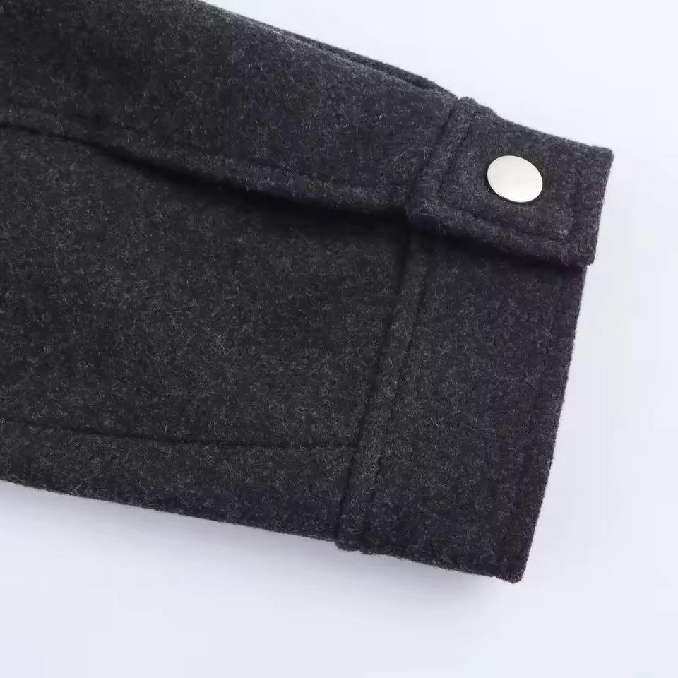 New Casual Loose Zipper Flap Pocket Decoration Long Sleeve Lapel Jacket Coat