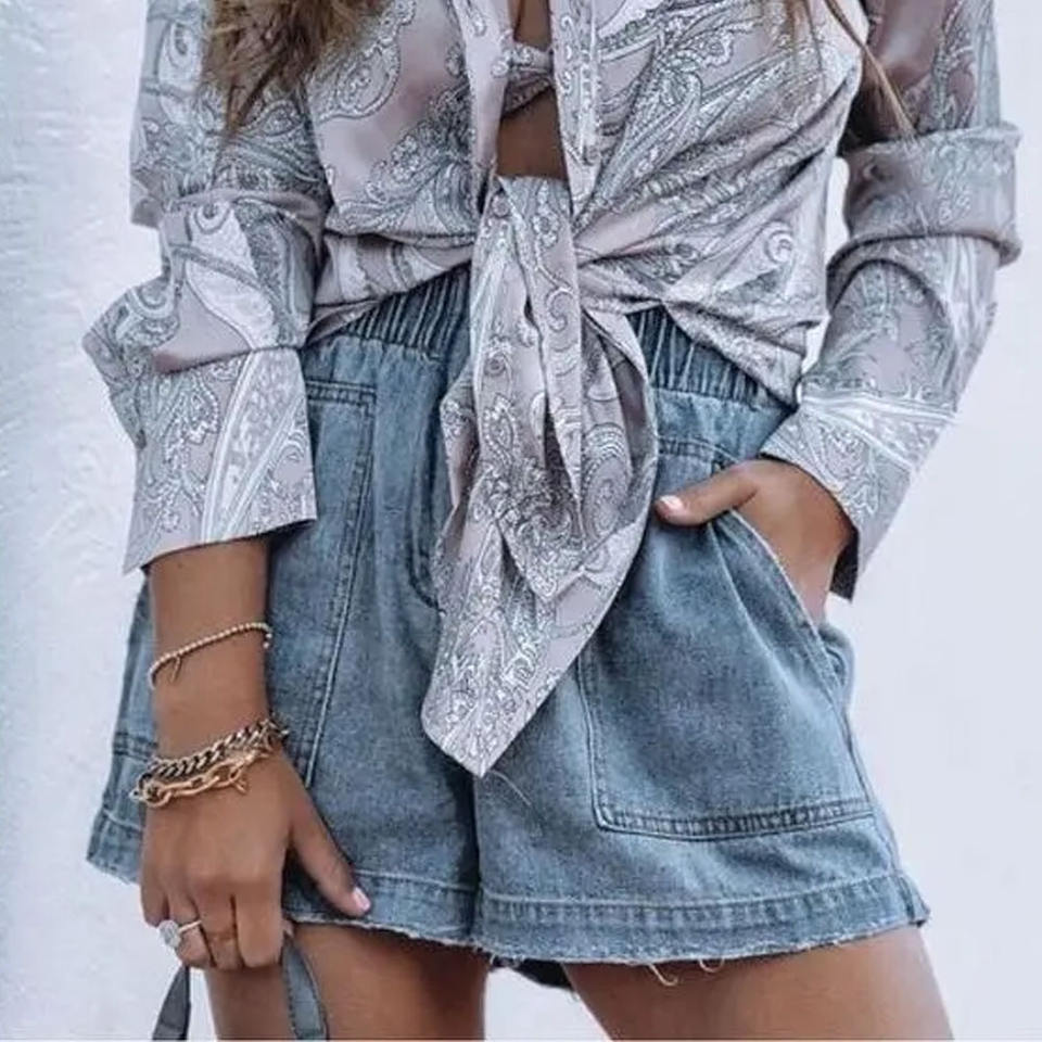 New Casual Washed Shorts for Women Custom Stylish Denim Shorts 2025 Top Quality Breathable Women's Shorts Elastic Waist Stylish