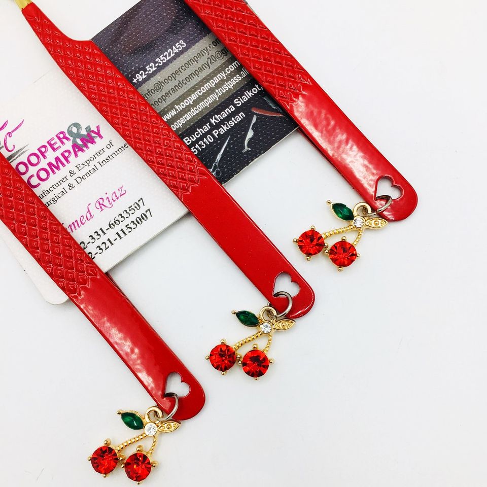 Top Sale Professional Charm Tweezers Sustainable Eyelash Extension Anti-Magnetic mink Stainless Steel Cherry Charm Tweezer Logo