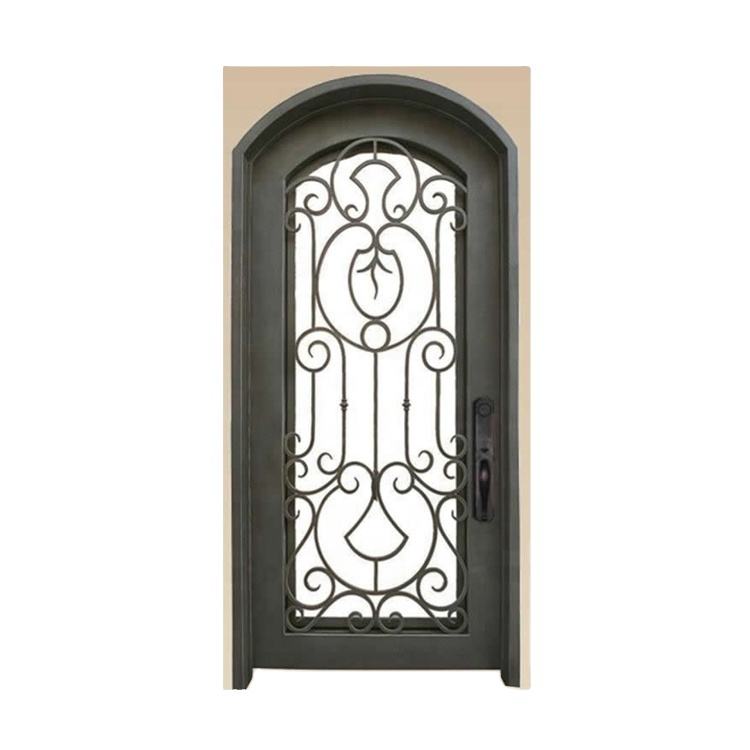 New Cheap Modern Simple Single Double Window Door Arch Top Safety Front Main Entrance Wrought Iron Door Thermal Break