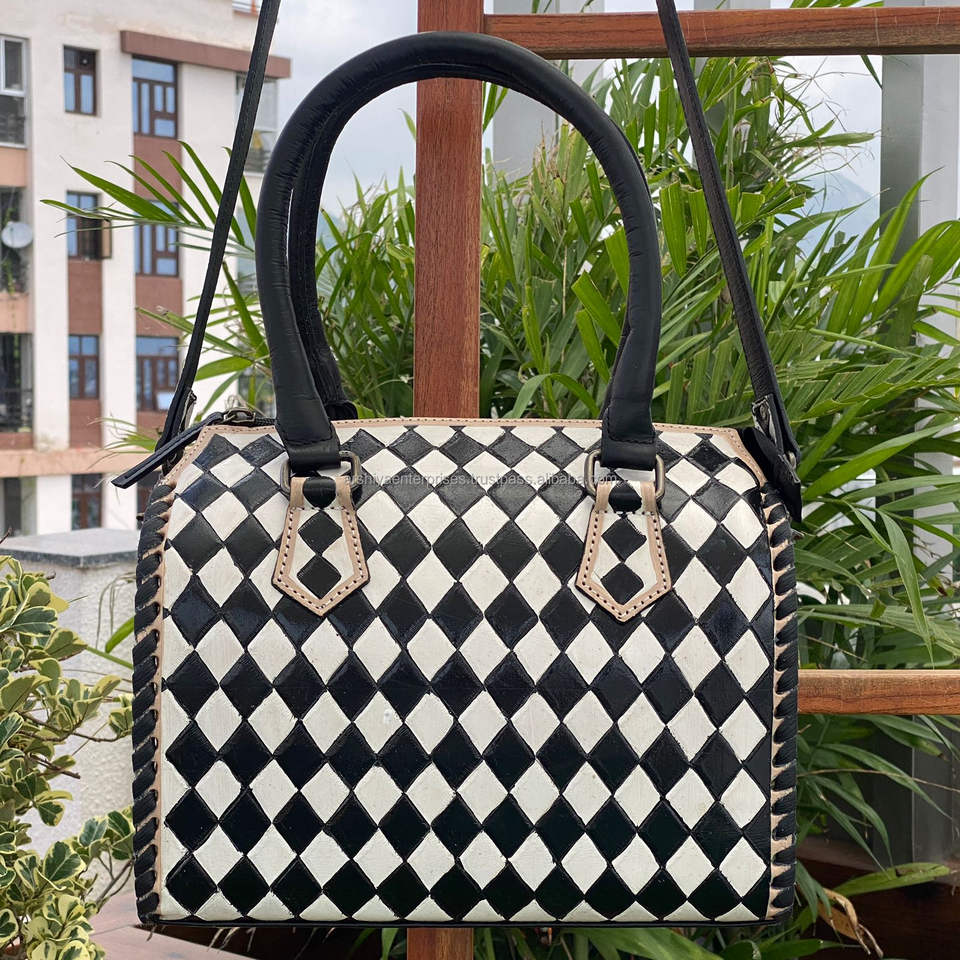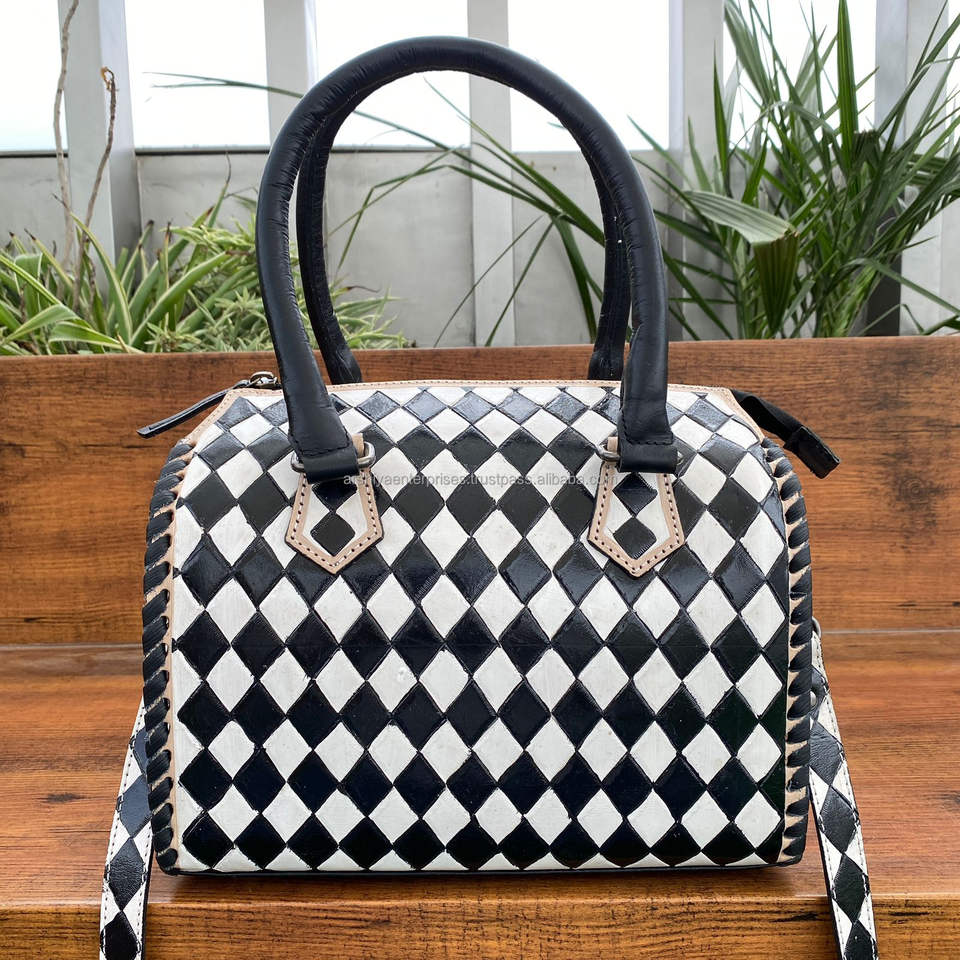 New Checkered Design Custom logo OEM ODM Genuine Leather Medium Size Duffel Travel Bags for Men & Women Wholesale Carry Duffle