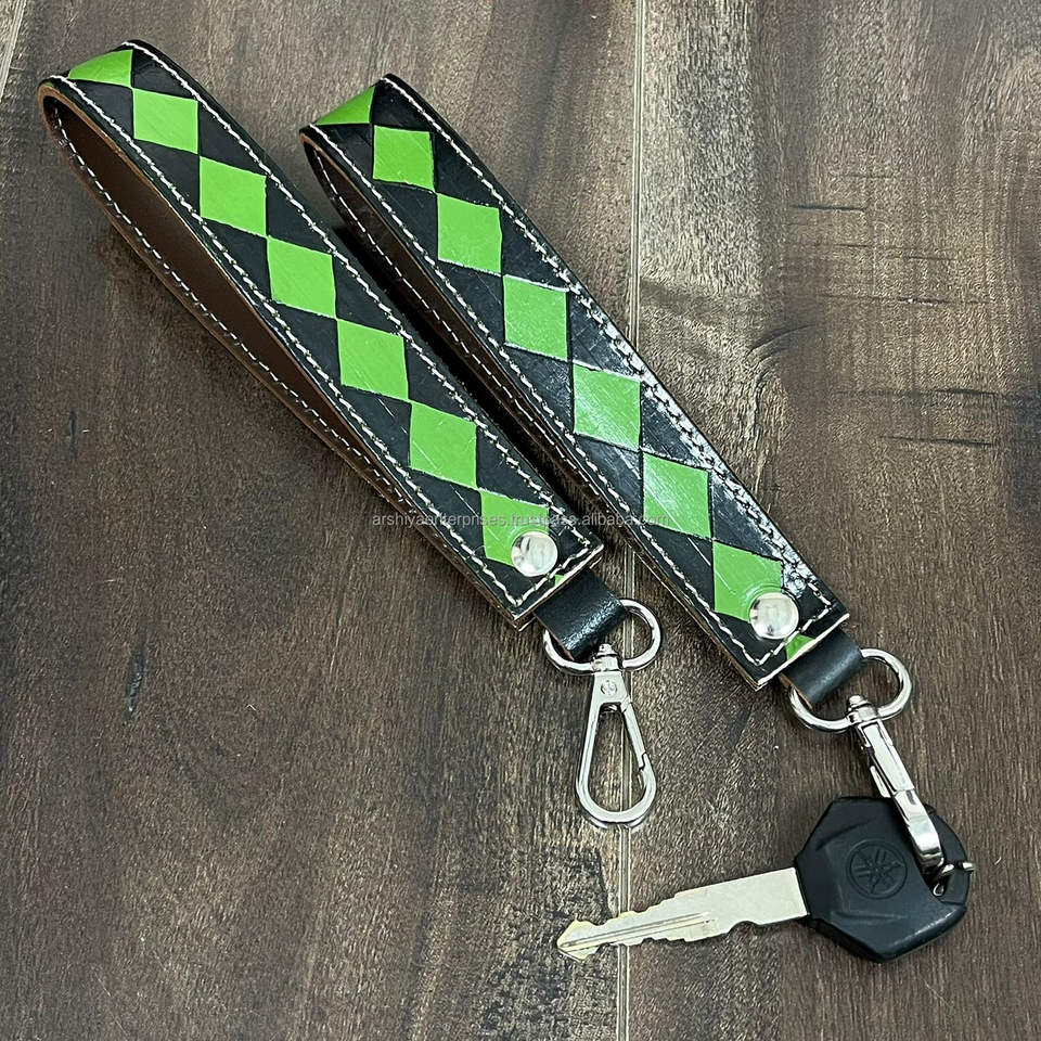 Product name:Genuine Checkered Leather Wristlet Keychain