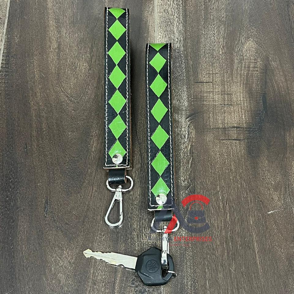 Genuine Checkered Leather Wristlet Keychain
