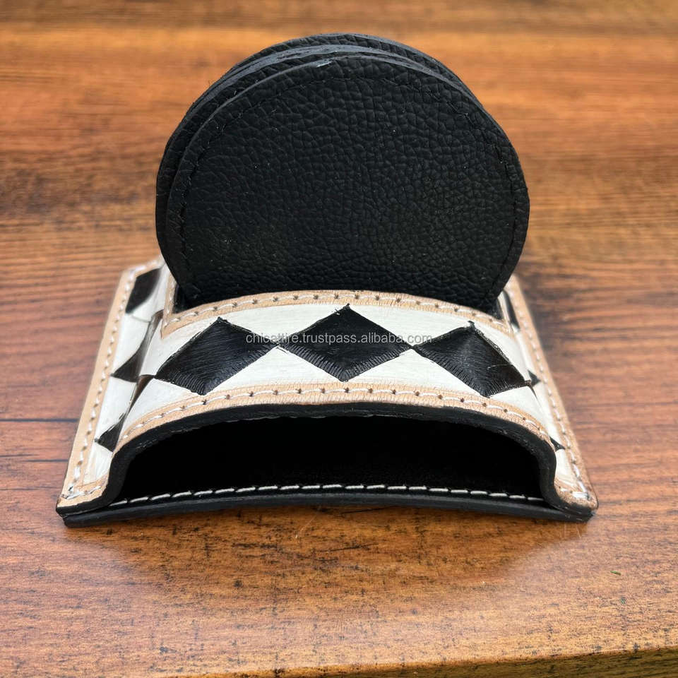 Product name:Genuine Leather Coasters With Checkered Stand Coaster Set