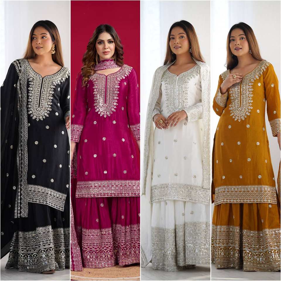 New Chiffon Silk Top Palazzo and Dupatta Set with Heavy Embroidery Sequence Work Fully Stitched Indian & Pakistani Clothing