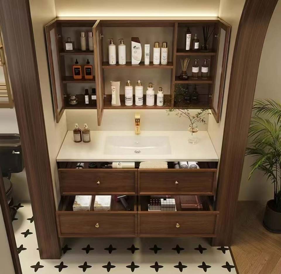 New Chinese Style Solid Wood Bathroom Cabinet Bathroom Vanity with Smart Mirror