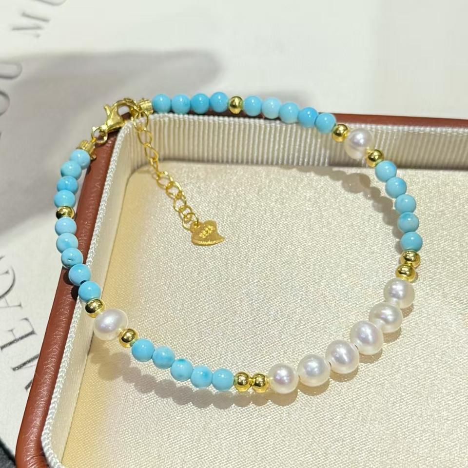 New Chinese Style Turquoise Freshwater Pearl Bracelet with Full Body Silver Starry Sky Internet Famous Fashion Tennis Bracelet