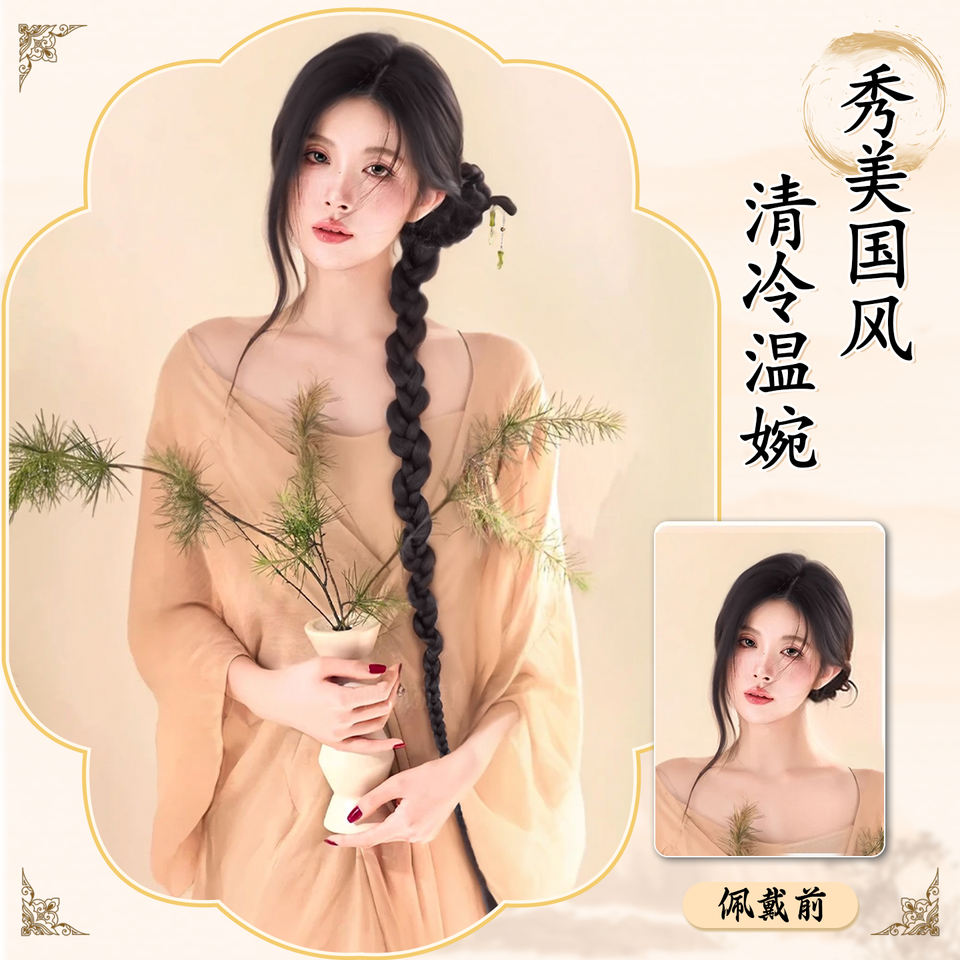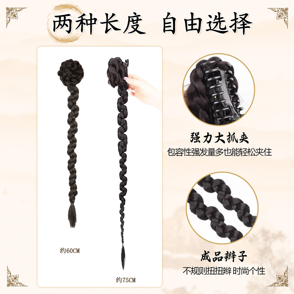 New Chinese Style Twisted Braid Wig With Clips Ancient Side Bun Hanfu Hair Accessory For Miss Sweet Youthful Look