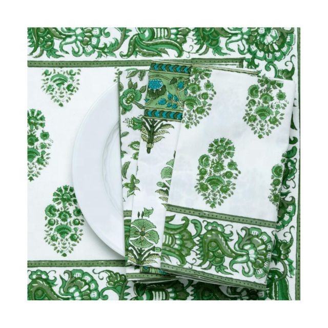 New Chinese Vintage Embroidered Deluxe Cotton Thickened Floral Green Block Printed Table Napkins Perfect for Wedding Parties