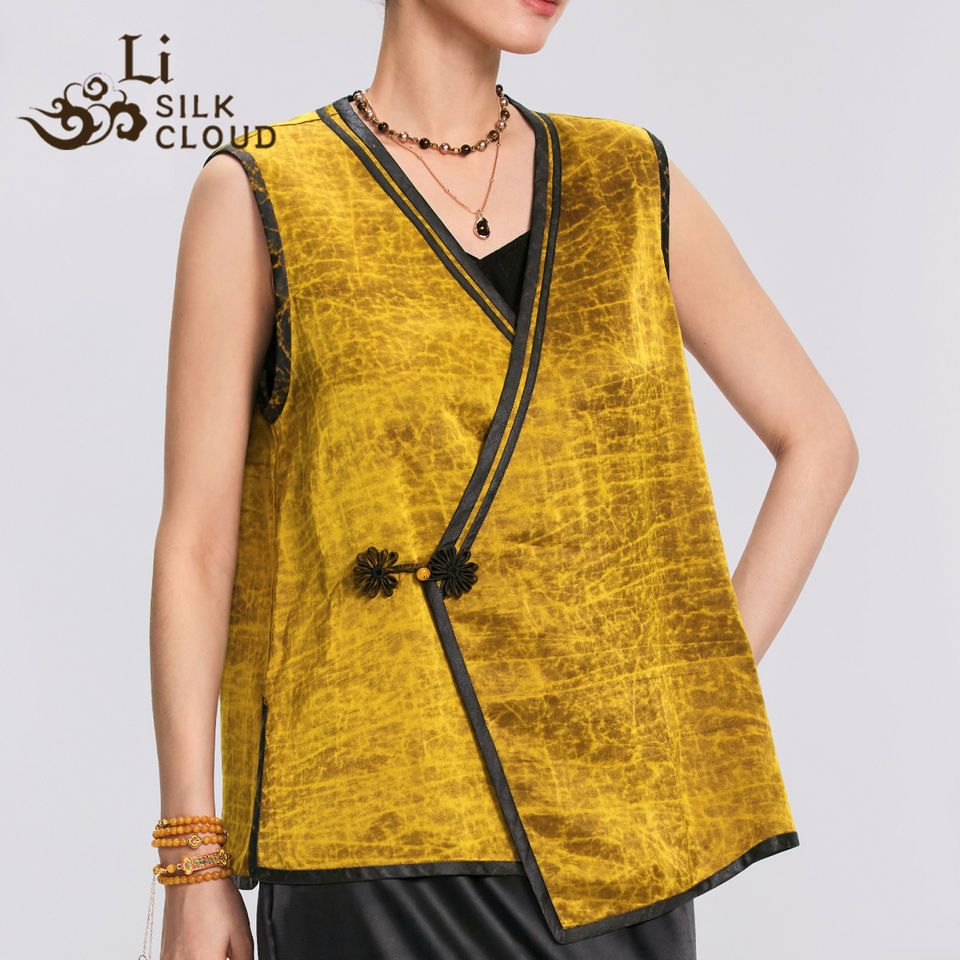 New Chinese Vintage Unique Buttoned Jacquard Women's Short Summer Breathable Eco-Friendly Outerwear Layered Vest