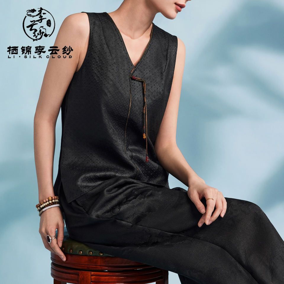New Chinese-style Xiangyunsha Floral Brocade Short Women's Vintage Waistcoat 100% Silk Eco-Friendly