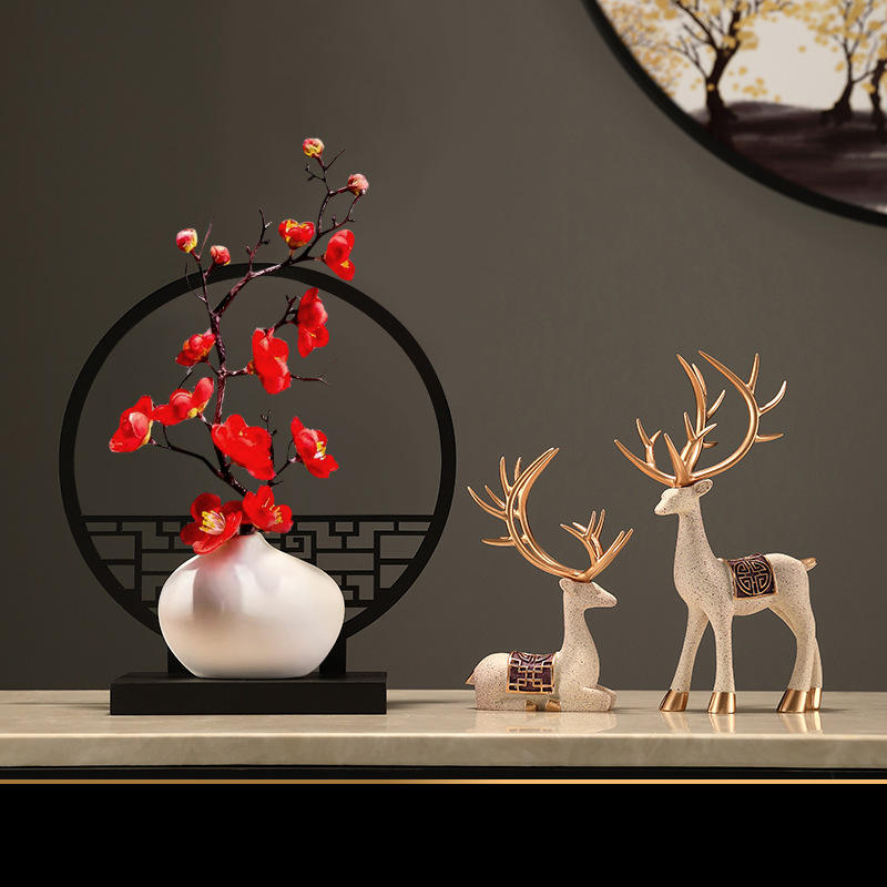 Chinese-Style New Living Room Ornament Wine Cabinet with Entrance Vase Decoration Resin Crafts TV Screen for Study Handicraft