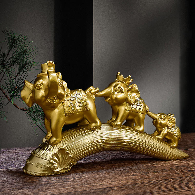 New Chinese-style parent-child elephant living room TV cabinet ornament home entrance three baby elephants decoration