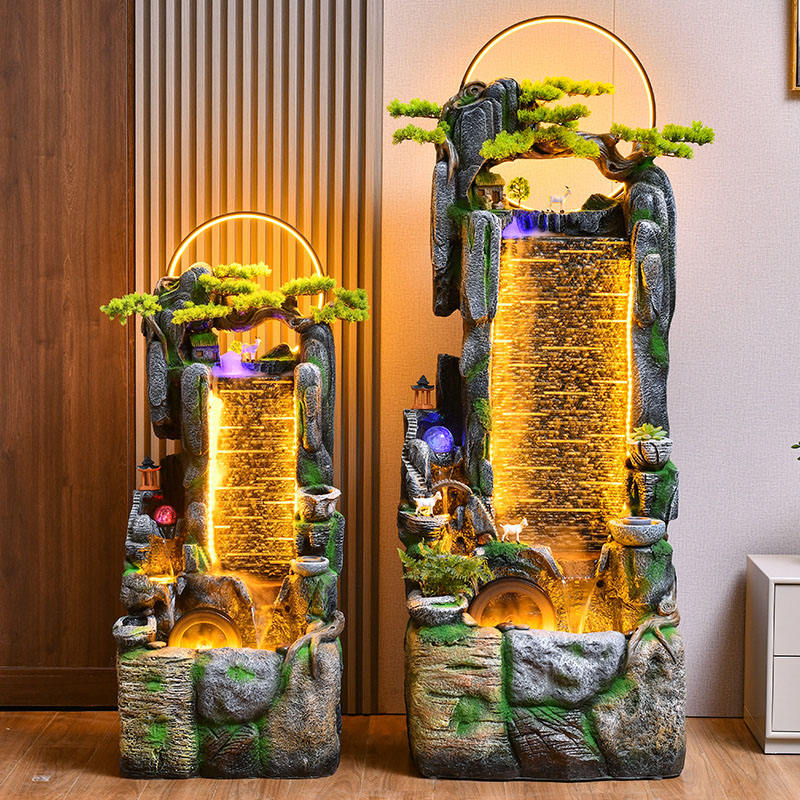 New Chinese Style Fiberglass Rockery Flowing Water Fountain Water Curtain Wall for Living Room Garden Landscape Ornaments